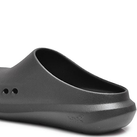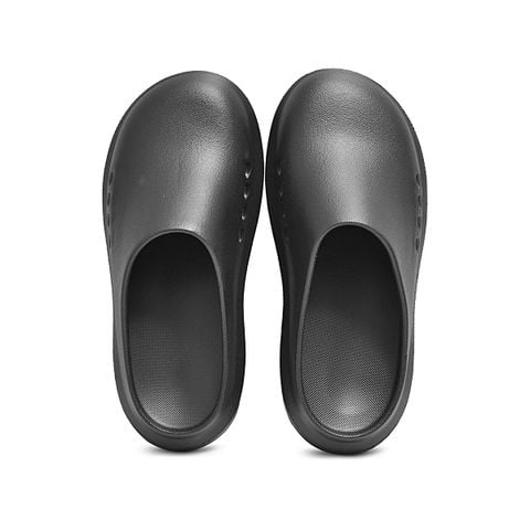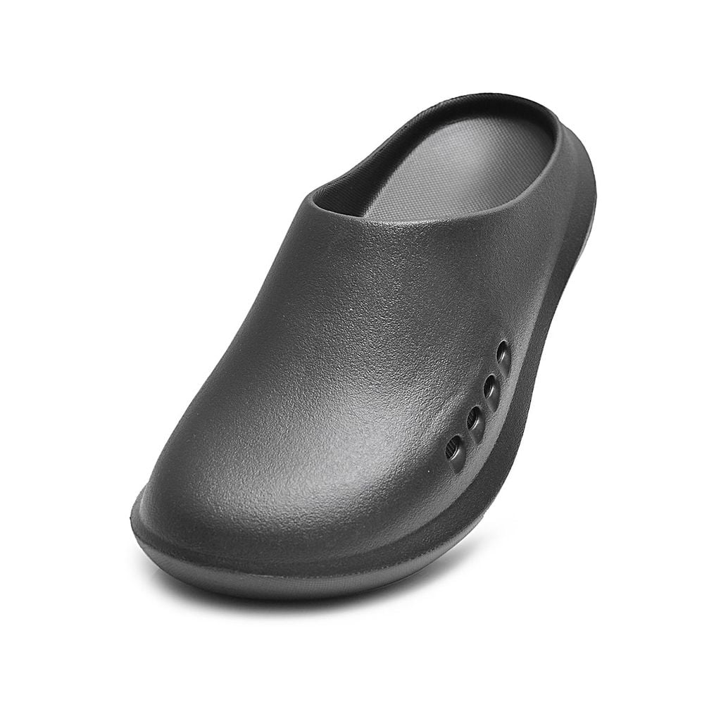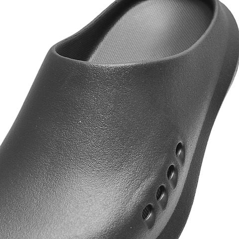 Thiết kế nguyên khối kết hợp cùng tone đen, hiện đại, dễ phối đồ và nổi bật cá tính. Bên hông thân dép được bố trí các lỗ thoát khí thông minh, giúp tạo sự thoáng mát, hạn chế hầm bí khi mang lâu. Phần đế được làm dày dặn với các gờ chống trượt, hỗ trợ di chuyển linh hoạt và an toàn trên nhiều bề mặt.