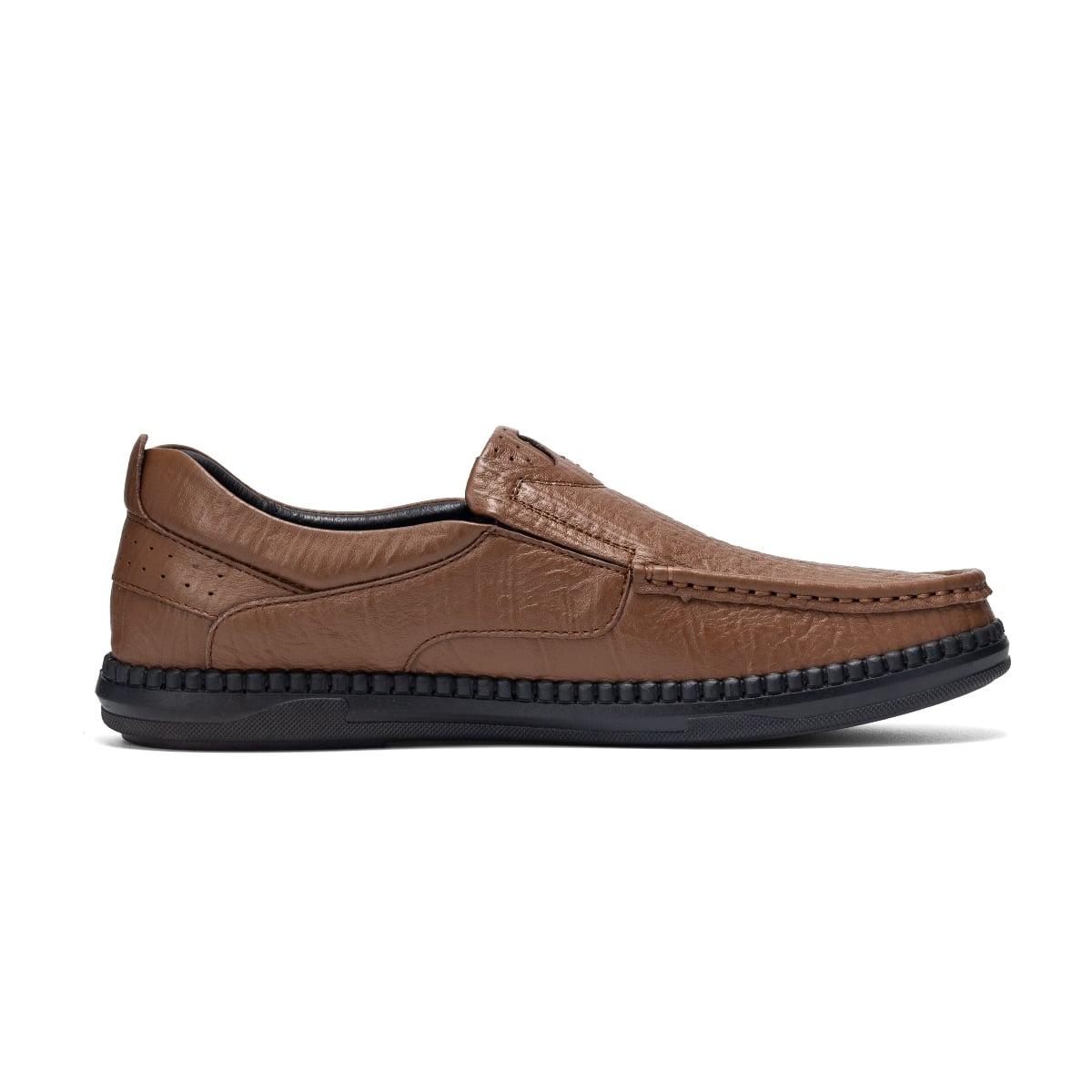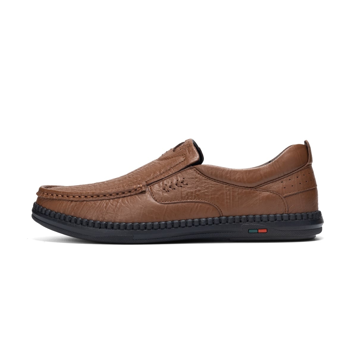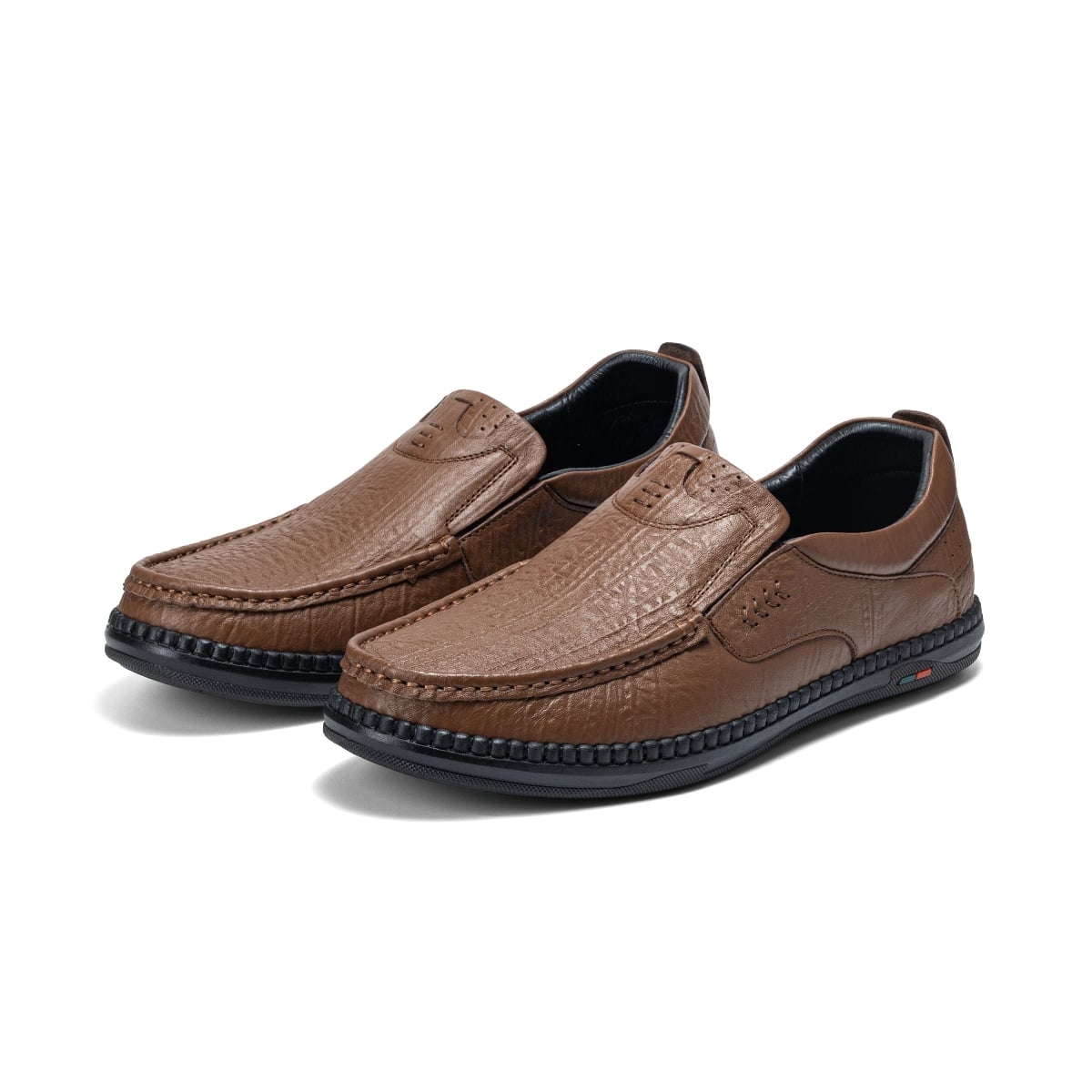 Thiết kế giày mọi không dây giúp người dùng dễ dàng xỏ chân và tháo ra nhanh chóng. Chất liệu da tổng hợp cao cấp có độ bóng nhẹ, vân giả da cá tính, không chỉ mang lại vẻ ngoài sang trọng mà còn dễ dàng vệ sinh. Phần lót giày êm ái cùng đế cao su đàn hồi giúp giảm áp lực khi di chuyển, mang lại sự thoải mái tối đa ngay cả khi sử dụng trong thời gian dài.